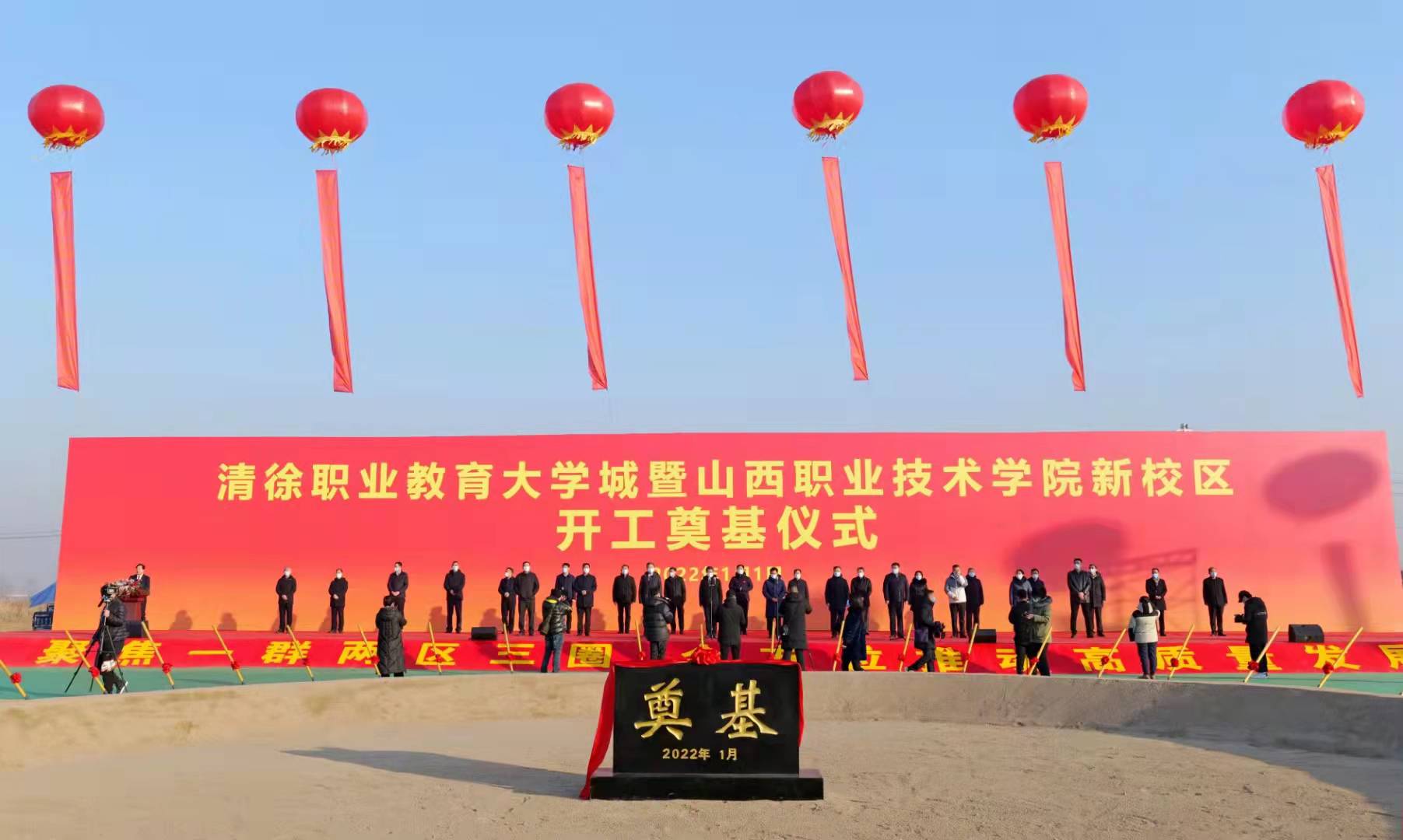 新年伊始,萬象更新。2022年1月1日,清徐職業教育大學城暨华体会体育app新校區開工奠基。太原市委副書記、政法委書記張韬宣布項目開工。山西省教育廳、山西省住建廳、山西省人社廳等省直部門負責同志出席。财務部全體人員參加開工奠基儀式。 清徐職業教育大學城位于太原清徐縣徐溝鎮、王答鄉交彙處,總規劃面積約1.4平方公裡。华体会体育app新校區是清徐職業教育大學城規劃建設的重點項目。該項目由清徐縣委、縣政府主導統籌建設,占地面積1366畝,總建築面積42.6萬平方米,采用“明堂辟雍·居中為尊”的設計理念,按照“一核兩軸多組團”的規劃結構,打造學術發展縱軸與生态文化橫軸交相輝映的空間序列。新校區建成後,将成為一所集15個專業集群、60個精品專業為一體,可容納2萬餘名師生的本科職業技術院校。
